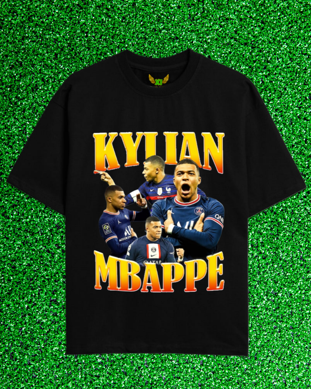 “Kylian Mbappé Golden Speed Tee — premium oversized fit with a bold, gold-accent graphic capturing Mbappé’s unstoppable pace and power.”